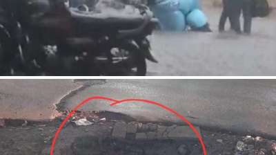 खुले नाली के गड्ढे में गिरा ऑटो-नागरिकों में आक्रोश