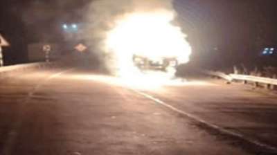 सड़क हादसा; कोरबा में देर रात ट्रक और बाइक के बीच भिड़ंत, दोनों वाहनों में लगी आग