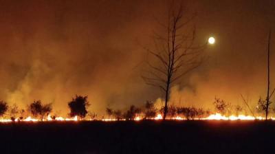 एयरपोर्ट क्षेत्र में धधकी आग, आसमान में उठता धुआं बना चिंता का कारण