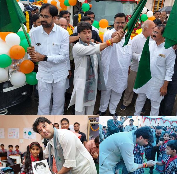 केंद्रीय विद्यालय पहुंचे केंद्रीय मंत्री ज्योतिरादित्य सिंधिया