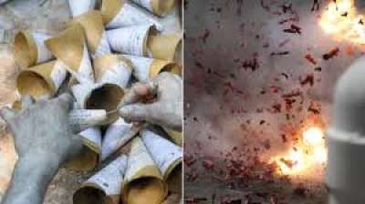 मकान में बन रहे थे पटाखे, पुलिस ने तीन लाख के पटाखे किए जब्त, दो गिरफ्तार