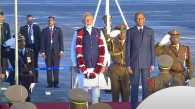 मॉरिशस में पीएम मोदी का गर्मजोशी से स्वागत, प्रधानमंत्री और मंत्री हुए मौजूद
