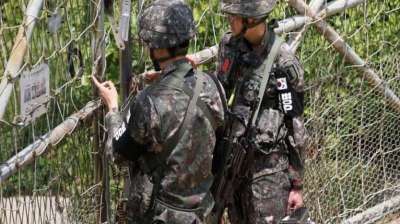 दक्षिण कोरिया के सैनिकों की तरफ से सीमा पार करने पर चेतावनी देते हुए की फायरिंग