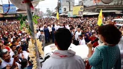 तिताबोर । कांग्रेस महासचिव प्रियंका गांधी वाड्रा ने जोरहाट में पार्टी उम्मीदवार गौरव गोगोई के समर्थन में मंगलवार को रोडशो किया। तिताबोर, जोरहाट लोकसभा क्षेत्र के अंतर्गत एक विधानसभा क्षेत्र...
