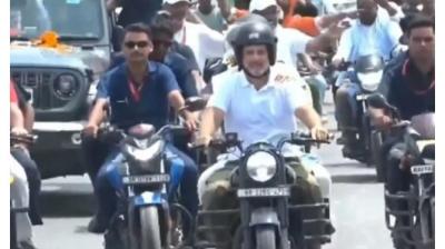 यात्रा के दौरान राहुल ने थामी बाइक की कमान, प्रियंका बनीं साथी