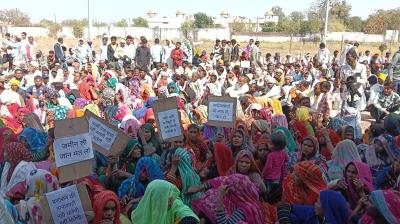 मुआवजा नहीं मिलने से नाराज किसानों-आदिवासियों का प्रदर्शन