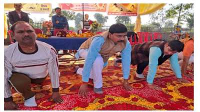 संस्कृति मंत्री धर्मेंद्र सिंह ने किया योगा, छात्रों को बताया स्वामी विवेकानंद की बातें
