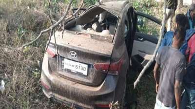 अनियंत्रित कार सड़क किनारे पलटी, दो युवक गंभीर रूप से घायल