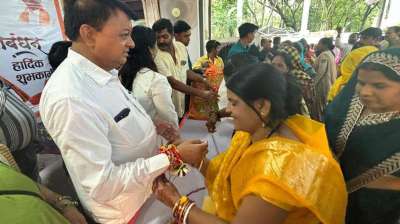 हाथ नहीं, पैरों से मुख्यमंत्री साय को वर्षा ने बांधी राखी