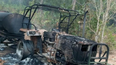 नक्सलियों ने टैंकर, मशीन और ट्रैक्टर वाहनों को किया आग के हवाले