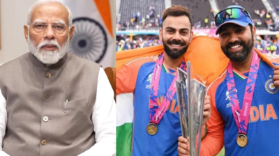 रोहित शर्मा और राहुल द्रविड़ ने पीएम मोदी को सौंपी ट्रॉफी